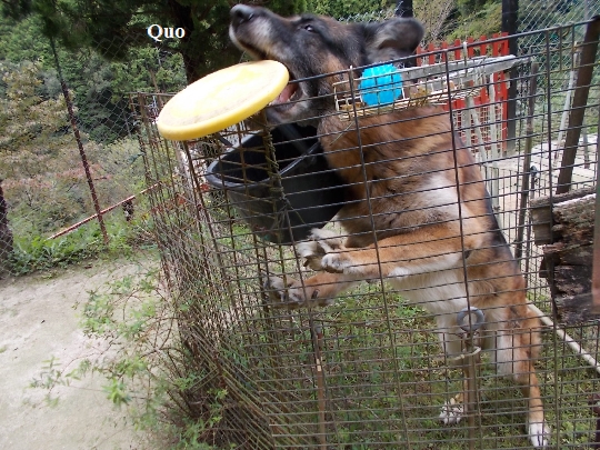 サークルの中に入ってフリスビーを盗む盗っ人ク王。