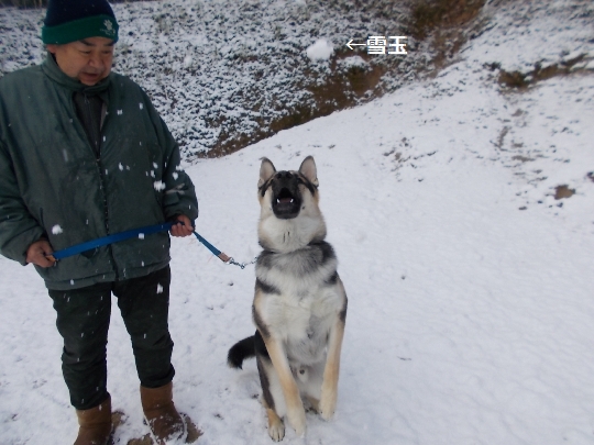 雪かきしてるとこにやってきて、雪を喰らう。