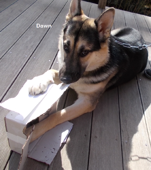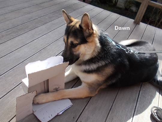 ドンドン、空き箱を熱心に噛んでらっしゃいます。