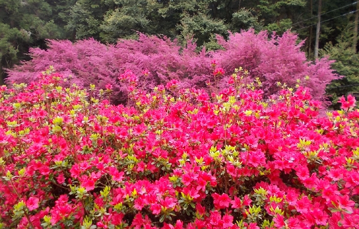 麓の家々では満開になってたツツジ、我家でもようやくほぼ満開に。