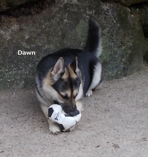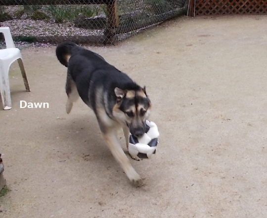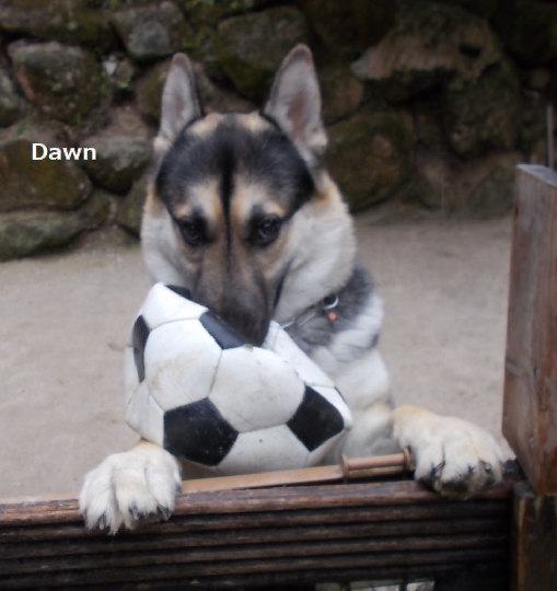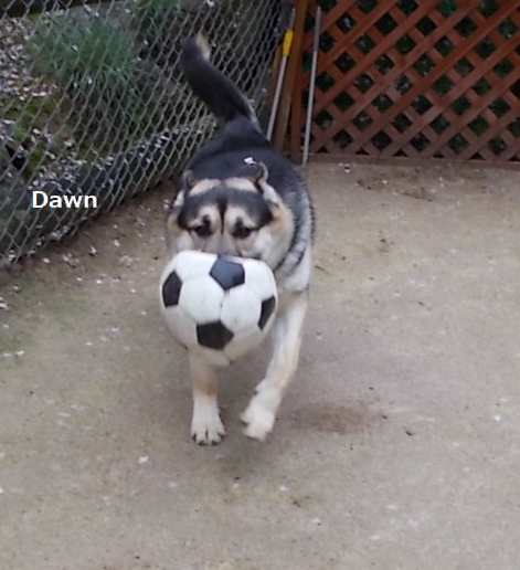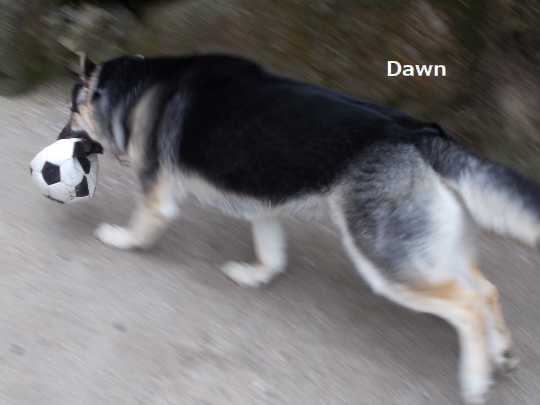 その後に外に出したドンドン、すかさず潰れサッカーボールを見つけ、咥えて暴走。